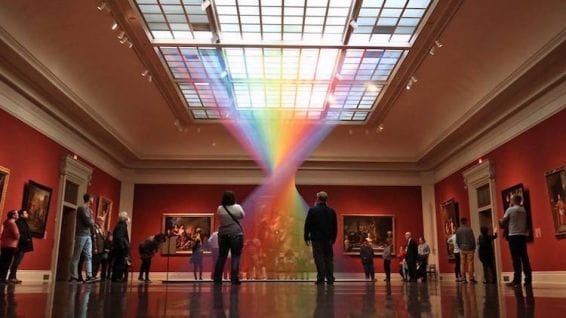 Najprawdopodobniej większość z prezentowanych artystów przygotowujących instalacje z motywem tęczy nie miała na myśli symboliki biblijnej. Na szczęście sztuka współczesna pozostawia sporo miejsca na swobodną interpretację, a zatem korzystając z przywileju jako odbiorca, który ściśle łączy symbol tęczy ze znakiem Przymierza, przedstawiam kilka instalacji, które zrobiły na mnie wrażenie.