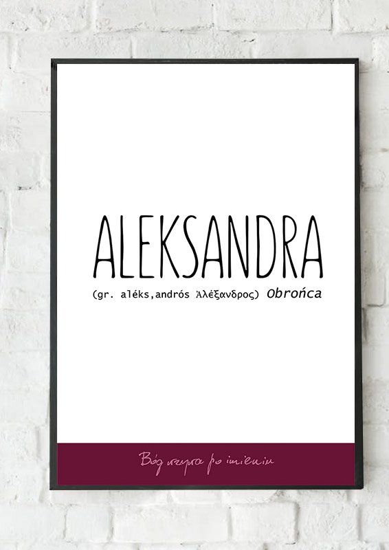 Imię Aleksandra pochodzi od jej męskiego odpowiednika Aleksander. Pochodzi ono od greckiego słowa aleksandros (obrońca ludzi). Imię Aleksandra w Polsce weszło do użycia około XIV wieku. Imię spopularyzował Henryk Sienkiewicz nadając je bohaterce Potopu.