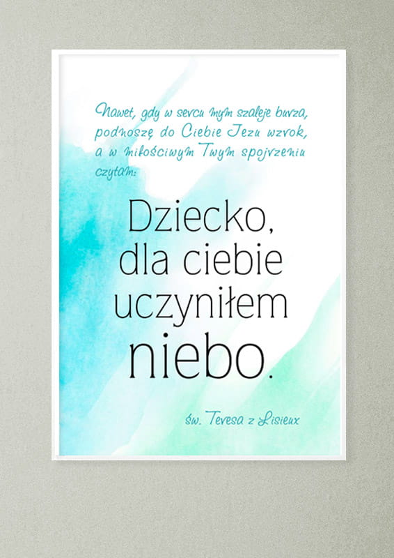 Nawet, gdy w sercu mym szaleje burza, podnoszę do Ciebie Jezu wzrok, a w miłościwym Twym spojrzeniu czytam: Dziecko, dla Ciebie uczyniłem niebo.