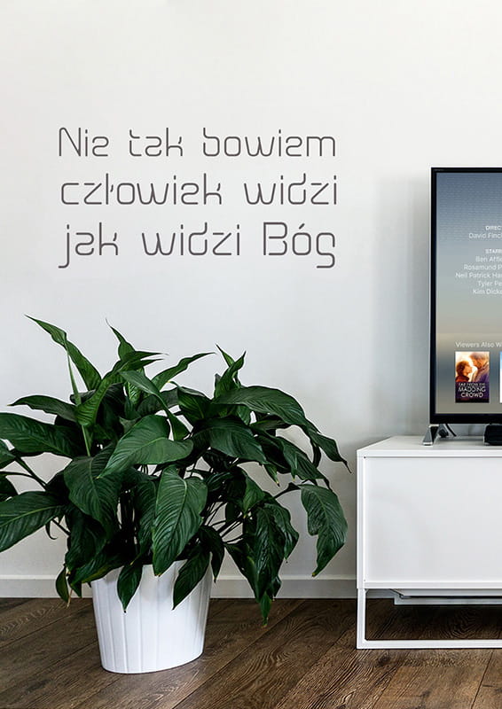 Zakupiona naklejka będzie zabezpieczona papierem transportowym, co ułatwia precyzyjne naklejanie. Jeśli chcesz dowiedzieć się więcej, jak przenieść napis lub grafikę na ścianę, obejrzyj zdjęcia instruktażowe.