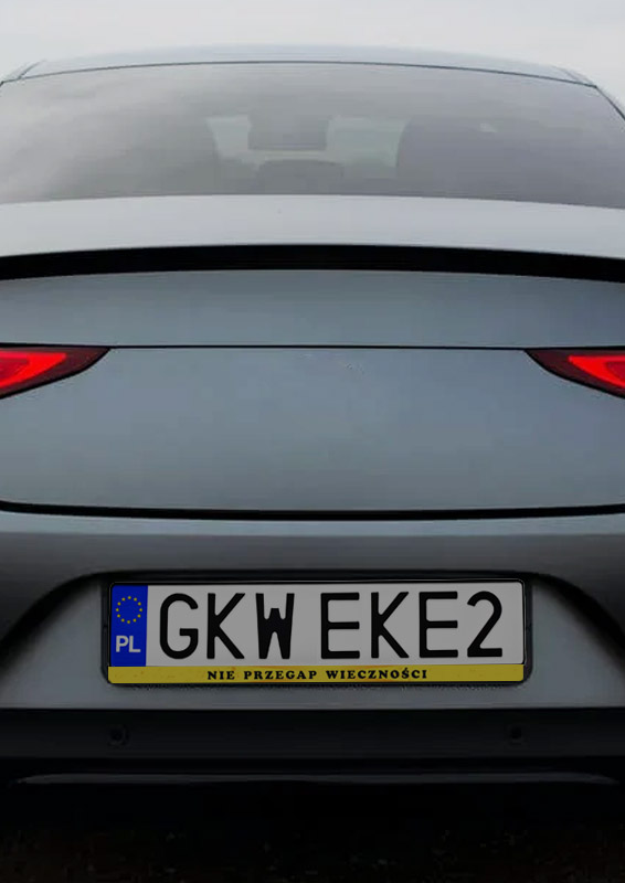 Wymiar 53/13 cm, standardowy wymiar dla polskich tablic rejestracyjnych. Sama naklejka 51/2 cm, w razie potrzeby projekt pozwala na przycięcie boków.